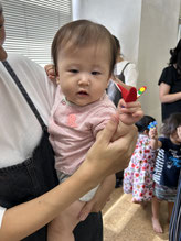 夏休みで、お兄ちゃんたちも参加。ママに抱っこで嬉しそう。